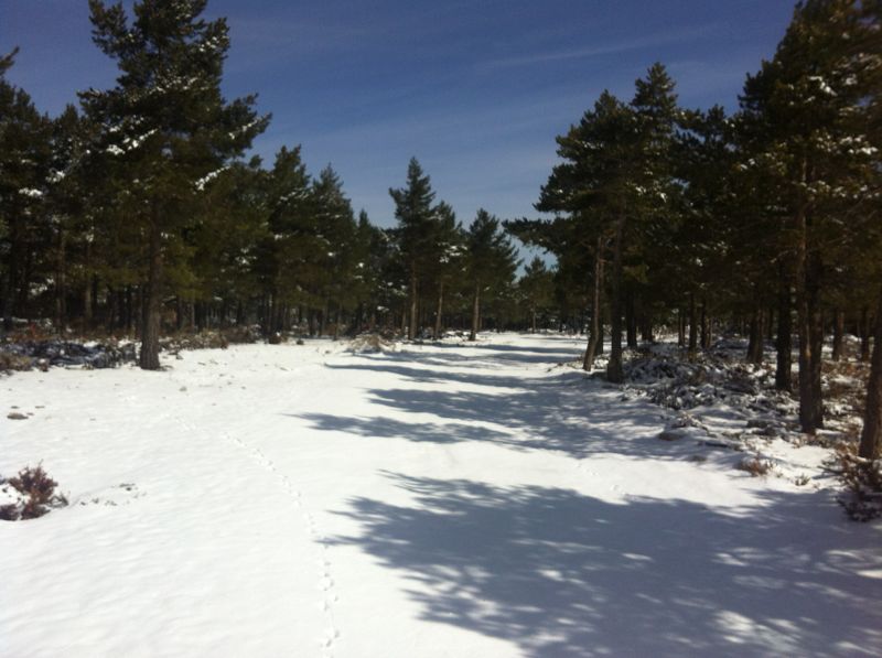 La verdad es que si nos dan a eligir un día de pedaleo por la nieve no lo hubiéramos elegido mejor.El frío justo para helar el barro y poder circular. Nieve la justa para no entorpecer y en polvo. Pero el viento si que fue molesto cuando salíamos de la protección del bosque.