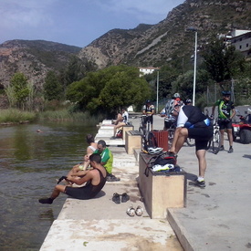 Gracias a todos los asistentes a la ruta.Al final nos juantamos unos cuantos,entre Turyciclo, y tres amigos mios de Bicibucle, pasamos un dia divertido entre los baños en las pozas y pasos con la bici por el rio. La bajada por los Calderones espectacular por mas veces que la repito no me canso de realizarla y eso que llevamos un buen tramo la bici al hombro.