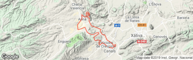 La ruta originalmente prevista en Alcira tenía demasiado asfalto, así que la he sustituido por la marcha de este año de LLombai ("transaledua" 2019). La he hecho y me ha parecido muy entretenida, tiene un alto porcentaje de senderos. De momento pongo el track original: tiene subidas fuertes, algunas por senda, y te deja satisfecho. Si tengo tiempo le añadiré algo más de sustancia.