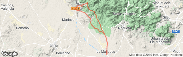 Ruta sencilla y entretenida por el sur de la calderona. Se inicia al borde de la carretera que une Bétera con Olocao.
