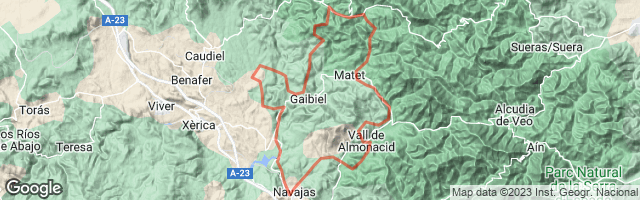 Ruta que sale de Calles. Tiene una subida bastante exigente, por la pendiente y por lo roto del terreno. La recompensa es la bajada del tiñoso, una pista rápida serpenteante.