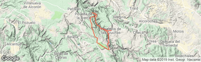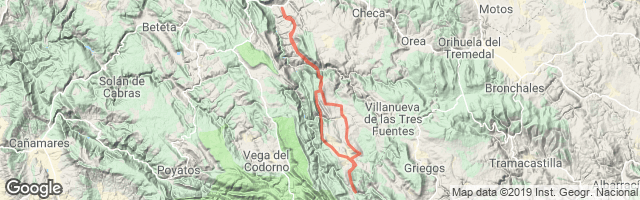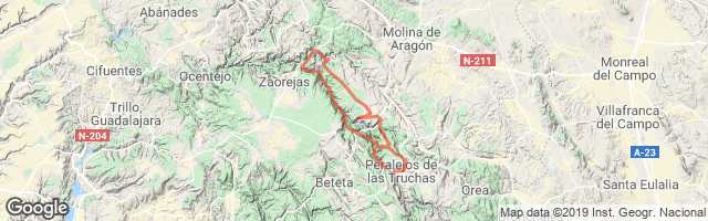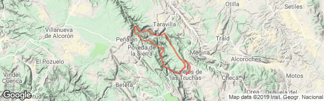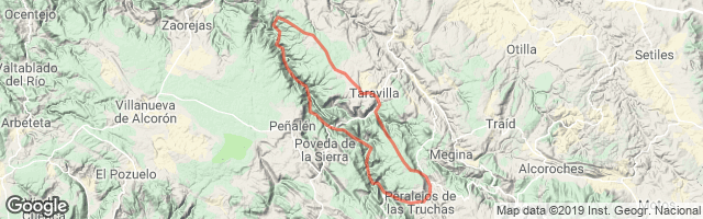 Variante corta pero intensa que sale de Peralejos hasta el puente de Peñalén y vuelta siguiendo el río arriba. Se podrán disfrutar de un mirador, el salto de Poveda y la Laguna de Taravilla.
