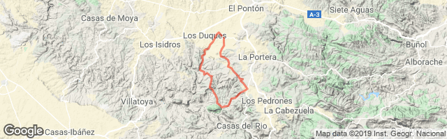 Esta ruta baja carca de las casas del Salto de Poveda siguiendo río abajo pasando por la Laguna de Taravilla, Luego hay que subir hasta los 1.500 m de altitud para bajar otra vez al río y vuelta a casa.