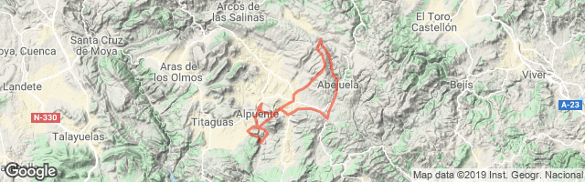 Saliendo del poblado de Chelva se asciende hasta los molinos de Higueruelas. Vuelta por barranco de Alcotas hasta pico del Remedio.