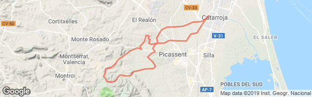 Ruta de nivel bajo que tiene como unica dificultad "les cinc apujades" de Picasent , y algun tramo tecnico que se pasa facilmente ... Discurre por pistas de asfalto y de tierra y por sendas faciles... Visitamos el paraje del Clot de les Tortugues.