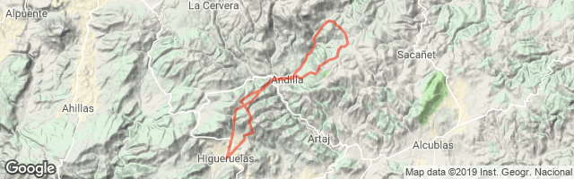 Una ruta clásica por la zona de Andilla con salida de La Pobleta que recorre la famosa senda del Cartero en sus dos tramos y como final la senda del GR7 bajando desde Canales.