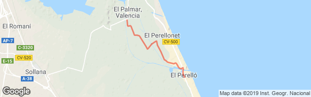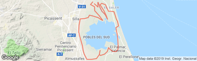 Ruta que le da la vuelta al lago de la Albufera de Valencia , aprovechando la vista que ofrece durante esto dias la marjal inundada para la siembra del arroz...