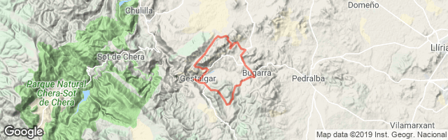 La ruta va desde Bétera a Naquera, subimos hacia el castillo de Serra y desde allí hacia la Mola de Segart y vuelta hacia Bétera.
