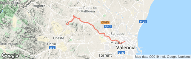 Ruta sencilla que comienza en el área recreativa Pedrera del Rei en Vilamarxant para dar una vuelta por los alrededores pasando por los términos municipales de Chiva y Cheste con una senda fácil para darle un poco emoción.