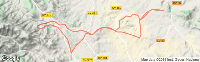 Ruta B(100 kms., 1797 m. y 7 horas).-Por otra parte l@s compañer@s que lo deseen se pondrán a prueba viniendo desde Valéncia a La Yersa comprometiendose a estar en La Yesa antes de las 14:30 h.. Hora en la que se comerá estés o no. Este es el track:http://es.wikiloc.com/wikiloc/view.do?id=3839451