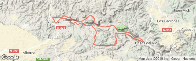 Éste es el track que hicimos de Casas del Río a Villatoya, aunque se puede mejorar evitando pasar la verja de la vuelta. Para ello habría que ir y volver por la misma margen del río, por diferente camino al de ida.
