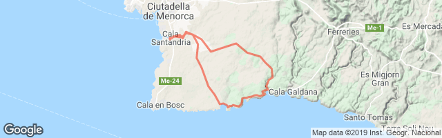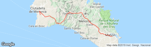 Ruta muy interesante en las proximidades de Mahó. Pasa por varias calas en las que darse un baño o comer. Muy recomendable la playa de la Olla, después de Benibequer. Lo peor, la vuelta por carretera con tráfico.