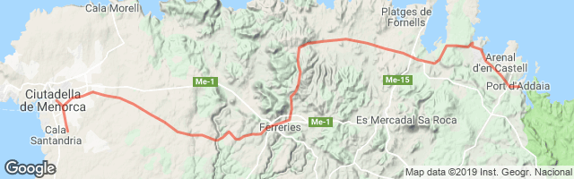 Ruta muy interesante entre Ciutadella y Ferreries, por el camí de L'Algendar, Después de Ferreríes hay una fuerte subida para pasar a la zona norte de la isla. La parte final va por el camí de cavalls y se puede aprovechar para darse un baño en el arenal de Son Saura.