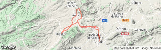 Pistas y sendas fáciles entre Canals, Anna y Enguera. El almuerzo es en un bar de Enguera con cremaet y chupitos incluidos.