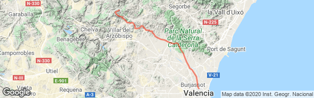 Ruta diseñada para hacerla en una mañana parando a almorzar en Olocau, desviándose 1 km. Acaba bajando la senda de El Cartero. Se puede evitar desviándose a la derecha 1,2 kms antes.