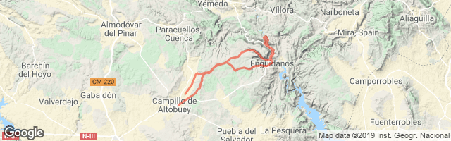 Aunque el track original sale desde Campillo, nosotros saldremos desde Enguidanos para no realizar tantos kms y disfrutar mas de los baños en Las Chorreras y en la playa cerca del pueblo debido a las altas temperaturas que anuncian. Lo he puesto entero por si decidimos ir a Campillo. En la carretera que sube a las Chorreras nada mas salir del pueblo hay un entradero que da a una esplanada donde se encuentra la playa que esta el salto de agua. Alli podemos aparcar asi antes de irnos a Valencia poder refrescarnos, aunque yo particularmente me llevo un bocata y bebida y me quedo en la playa un poco mas. De aqui saldremos carretra arriba al Meson Los Carriles en donde tomaremos cafe y encargaremos el almuerzo que sera tras terminar el primer bucle. Luego bajaremos al primer baño en la playa para afrontar frescos la subida al mirador las chorreras. Ya de bajada de nuevo haremos un alto para de nuevo bañarnos en la parte baja de Las Chorreras cerca del pueblo.