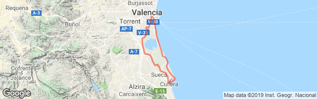 Una ruta clásica ya en los veranos del Club , iremos hasta Cullera por la Marjal , visitando el Puerto de Catarroja , Silla, El Romani, el "Ullal de Baldovi" y la Montanyeta del Sants donde almorzaremos , para después seguir hasta Cullera , subir al Castillo por el Calvario, ascender hasta el Radar metereologico ( La Bola ) , y bajar a bañarse y a comer a la Playa. Regreso por la costa , Mareny de Sant Llorens , Mareny de Barraquetes, Palmeretes , Perello, Perellonet y por la Dehesa y el Saller llegar de nuevo a Valencia , son unos 110 Km casi llanos a escepcion de la ascension a la montaña de Cullera, que puede evitar el que quiera. También es posible , volver en tren después de comer con lo que la ruta queda en unos 60 Km...