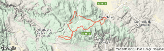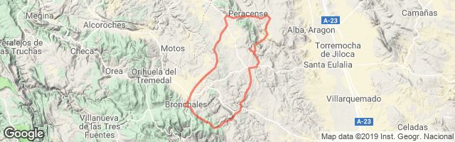 Ruta que visita los pueblos de Bronchales, Monterde, Pozondon, Almohaja, Peracense, Rodenas y vuelta a Bronchales , Tocamos zonas de bosque al principio , para luego pasar por zonas de carrasca y sabina , y teminar con paisajes de rodeno y paramo... Visitamos la estatua del Peruano, los castillos de Ares y Peracense , la Carrasca delos Tocones ( Milenaria ) y el Hoyon ...