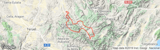 Salida de Linares de Mora- Llegada Valdelinares. 2ª etapa salida Valdelinares - llegada Linares de Mora.