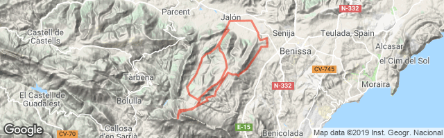 Ruta por la sierra de Bernia. Saliendo desde Jalón subiremos por pista paralelos a la costa disfrutando de las preciosas vistas de la bahía de Calpe y el peñón de Ifach. Cruzaremos hacia el interior hasta la base de Bernia y subiremos hasta el Fuerte de Bernia para admirar el resto de la línea costera de la Marina Alta, la bahía de Benidorm y el Puig Campana. Regresaremos hasta la base de la montaña por el mismo camino e iniciaremos el descenso a Jalón con algunos tramos de sendero ciclable y otros de trialera (también ciclable).